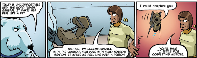 BALA-AMIN: Captain, I'm uncomfortable with the symbiosis you have with your sentient weapon. It makes me feel like half a person.