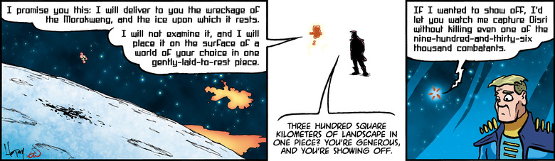 PETEY: If I wanted to show off, I'd let you watch me capture Oisri without killing even one of the nine-hundred-and-thirty-six thousand combatants.
