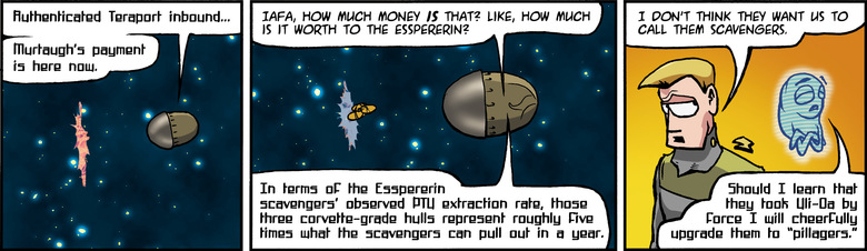 IAFA: In terms of the Esspererin scavengers' observed PTU extraction rate, those three corvette-grade hulls represent roughly five times what the scavengers can pull out in a year.