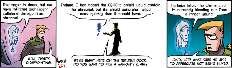 CINDY: Indeed. I had hoped the CQ-101's shield would contain the shrapnel, but its shield generator failed more quickly than it should have.