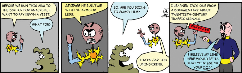 Schlock: Hey, you, flying robot-head.