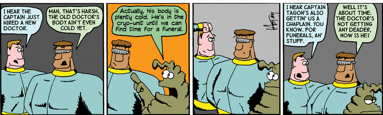 Tagon: While we're assembled, I'd like the reverend to conduct a funeral for our last doctor.