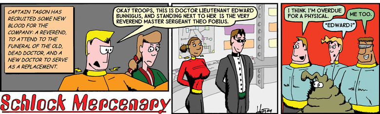 Tagon: Okay, troops, This is Doctor Lieutenant Edward Bunnigus, and standing next to her is the very Reverend Master Sergeant Theo Fobius.