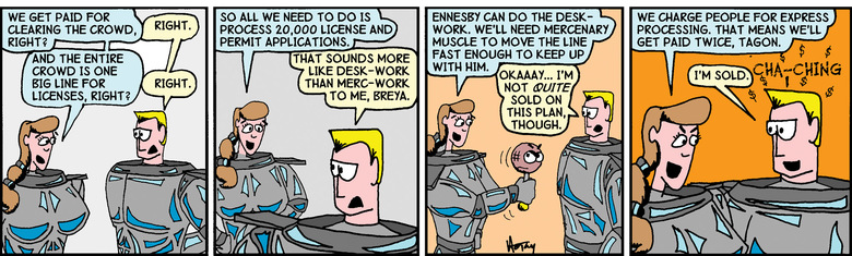 Tagon: Corporal, take a detail to the front desk and collect a stack of licensing forms.
