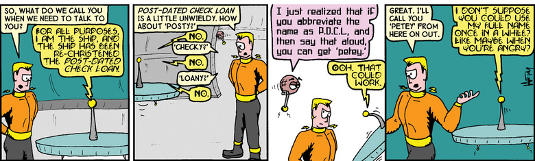 Petey: For all purposes, I am the ship, and the ship has been re-christened The Post-Dated Check Loan.
