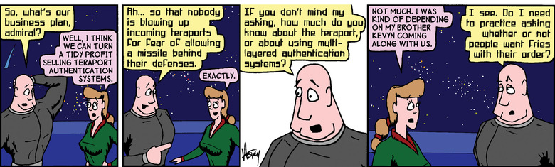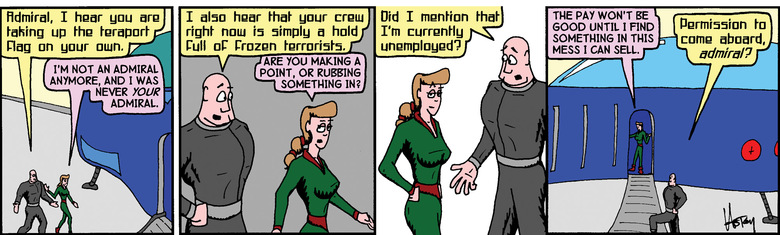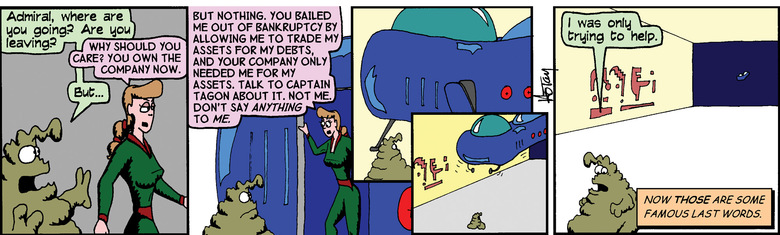 Schlock: Admiral, where are you going? Are you leaving?
