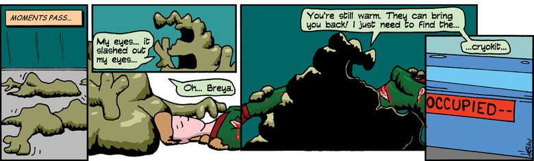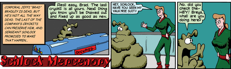 Schlock: Rest easy, Brad. The last cryokit is all yours. Next thing you know you'll be thawed out and fixed up as good as new.
