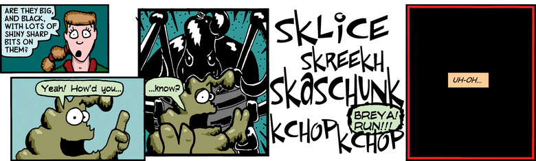 Schlock: No, you realy don't understand. We're fighting giant beetle-monster things, and it's not safe here.
