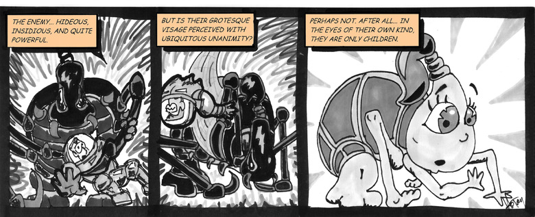 Footnote: Note: For those of you currently concerned about the health and/or welfare of Breya, consider the following: * Tagon instructed Der Trihs and others to secure the passage to the transport. * Tagon and members of Shodan's squad were securing the base of operations at the head of the passage to the transport.* The monster got past all of them to attack Schlock and Breya.In short, you should be concerned about everybody...