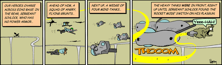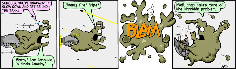 Elf: Schlock, you're unarmored! Slow down and get behind the tanks!