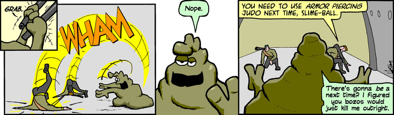 Schlock: Are those anti-tank cannons you've got on your shoulders?