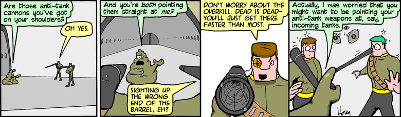 Schlock: Actually, I was worried that you might want to be pointing your anti-tank weapons at, say, incoming tanks.