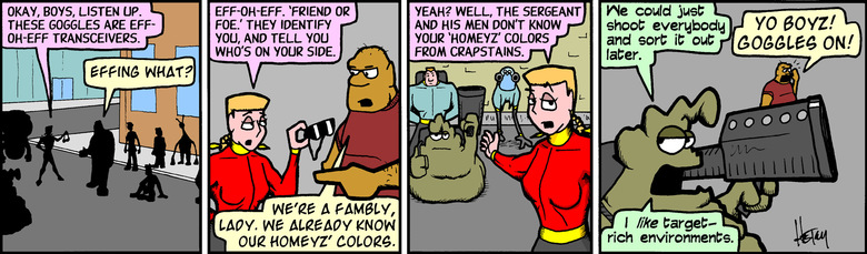 Elf: Yeah? Well, the sergeant and his men don't know your 'homeyz' colors from crapstains.