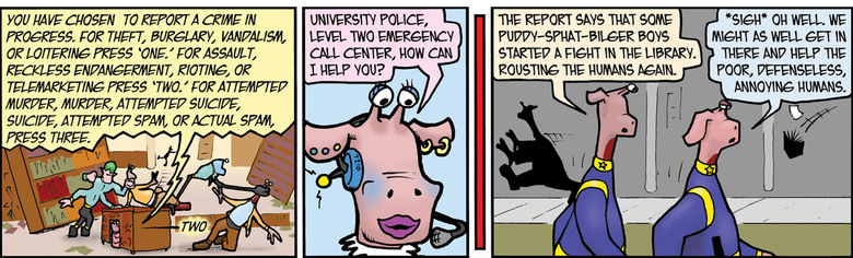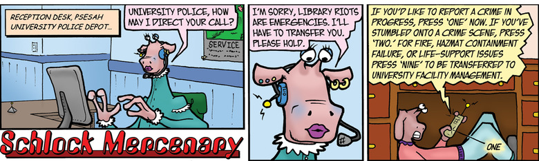 Schlock: Of course, with us on official business, we really shouldn't have let you goad us into fighting.