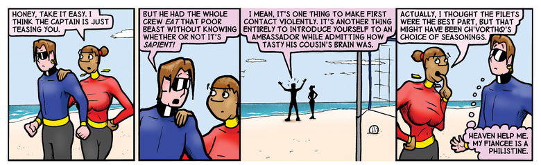 Reverend: I mean, it's one thing to make first contact violently. It's another thing entirely to introduce yourself to an Ambassador while admitting how tasty his cousin's brain was.