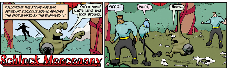 Narrator: Following the stone-age map, Sergeant Schlock's squad reaches the spot marked by the engraved 'X.'