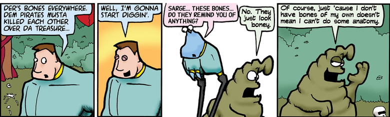 Nick: Der's bones everywhere. Dem pirates musta killed each other over da treasure...