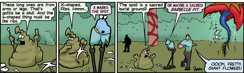Schlock: These long ones are from arms or legs. That's gotta be a skull. And the x-shaped thing must be like ribs.