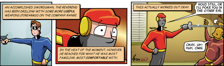 NICK: Rev, didja stake that guy ta th' wall on purpose?