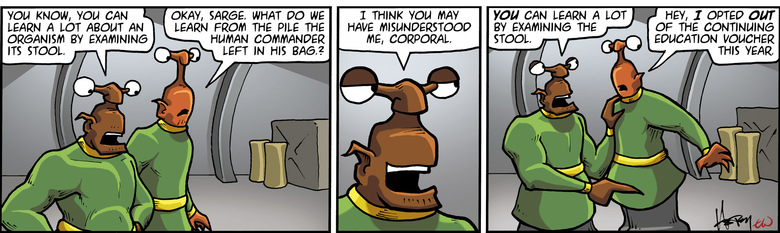BANGER SGT: You know, you can learn a lot about an organism by examining its stool.