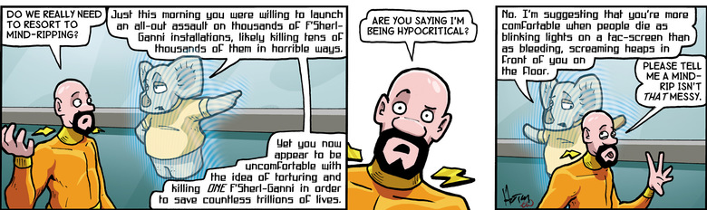 Yet you now appear to be uncomfortable with the idea of torturing and killing ONE F'Sherl-Ganni in order to save countless trillions of lives.