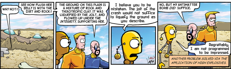 More to the point, certain 21st-century terran cities, including Mexico City and Anchorage, Alaska, were built on thixatropic ground. Earthquakes there tended to be very destructive, with buildings bouncing around as if they were built on jiggling gelatin. The parable of the foolish man (whose house was built on the sand) and the wise man (whose house was built on the rocks) could quite naturally have included the uninformed and very unfortunate man who was careful to not build on the sand but who wouldn't know the meaning of the word "thixatropic" if you wrote it on a bottle of ketchup and poured it over his necktie.