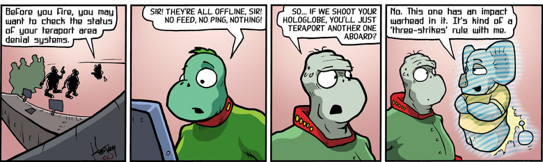 Petey: Before you fire, you may want to check the status of your teraport area denial systems.