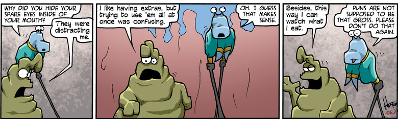 Legs: You're back to just the two eyes. The four-eyed thing was creeping me out.