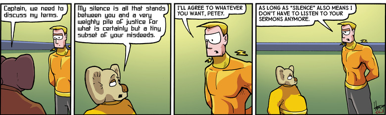 Captain Tagon: As long as "silence" also means I don't have to listen to your sermons anymore.