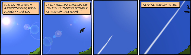 Narrator: It is a pristine cerulean sky that says "there is probably no way off this planet."