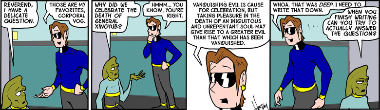 Reverend Theo: Those are my favorites, Corporal Vog.