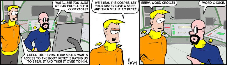 Petey: I told you, if Tagon thinks he can get paid twice, he'll jump at the job. He's predictable that way.