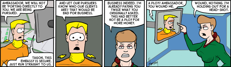 Captain Tagon: And let our pursuers know who our clients are? That would be bad for business.