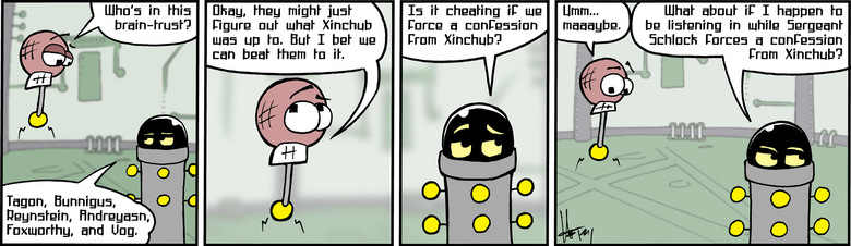 TAG: What about if I happen to be listening in while Sergeant Schlock forces a confession from Xinchub?