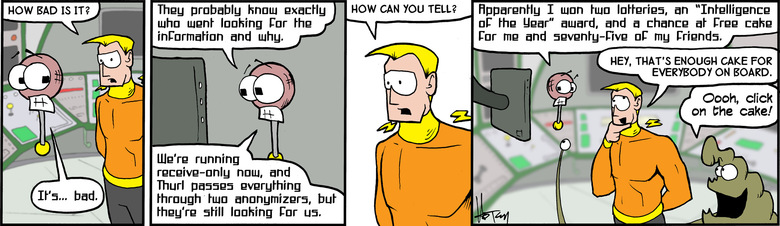 Captain Tagon: Hey, that's enough cake for everybody on board.