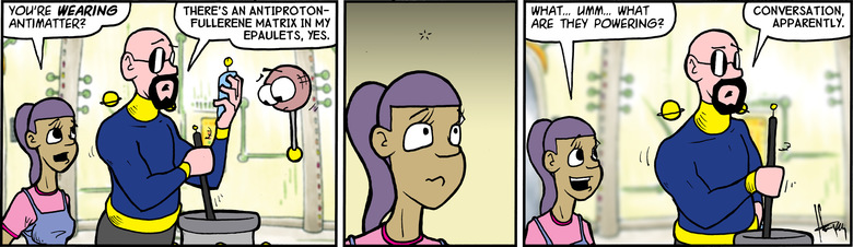 Kevyn: There's an antiproton-fullerine matrix in my epaulets, yes.