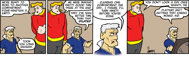 Skipper: Clearing one compartment per day. . . I figure I'll turn ninety before you're done.