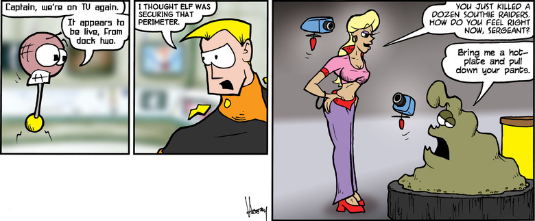 Elf: They had plasma grenades, sir. Sergeant Schlock got pretty badly burned.