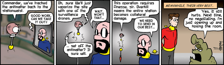 Pibald: . . .you shouldn't be trying to explain things in a room where an antimatter grenade vaporized everything.