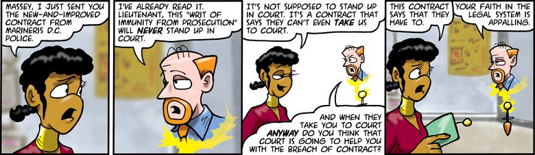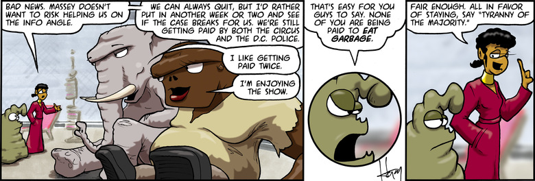 'CHELLE: We can always quit, but I'd rather put in another week or two and see if the case breaks for us. We're still getting paid by both the circus and the D.C. police.