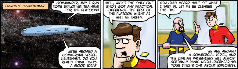 KEVYN: We're aboard a commercial vessel, Lieutenant. Do you really think that's a good idea?