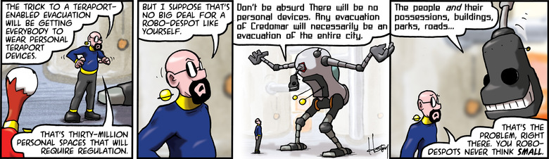 KEVYN: That's the problem, right there. You robo-despots never think small.