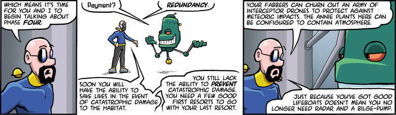 KEVYN: Your fabbers can churn out an army of interceptor drones to protect against meteoric impacts. The annie plants here can be configured to contain atmosphere.