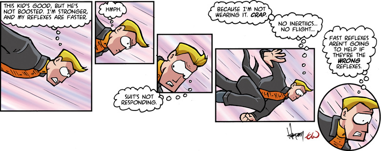 CAPTAIN TAGON: *thought bubble* This kid's good, but he's not boosted. I'm stronger, and my reflexes are faster.