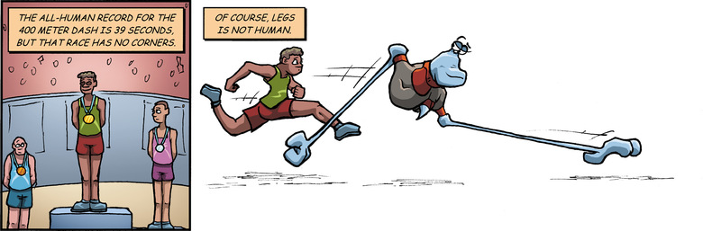 NARRATOR: The all-human record for the 400 meter dash is 39 seconds, but that race has no corners.