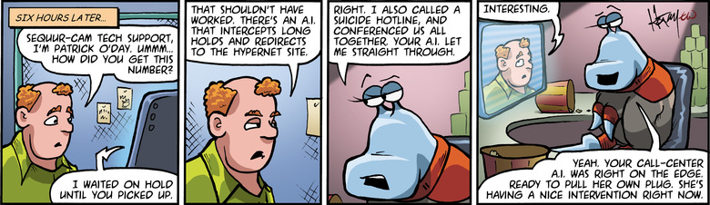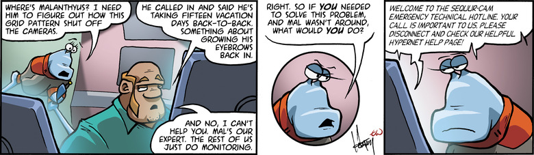 Hotline Voice Tree (over comm): Welcome to the Sequur-Cam Emergency Technical Hotline. Your call is important to us. Please disconnect and check our helpful Hypernet help page!