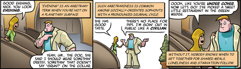 NARRATOR: "Evening" is an arbitrary term when you're not on a planetary surface.