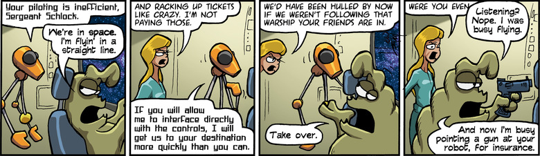 BURANA-BOT: Your piloting is inefficient, Sergeant Schlock.