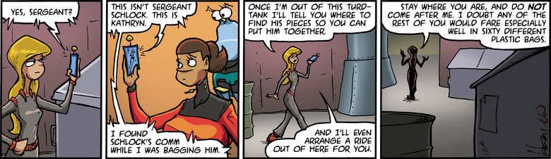 KATHRYN: *through comm* This isn't Sergeant Schlock. This is Kathryn.