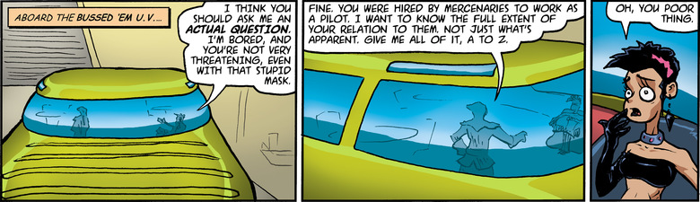 KATHRYN: I think you should ask me an actual question. I'm bored, and you're not very threatening, even with that stupid mask.
